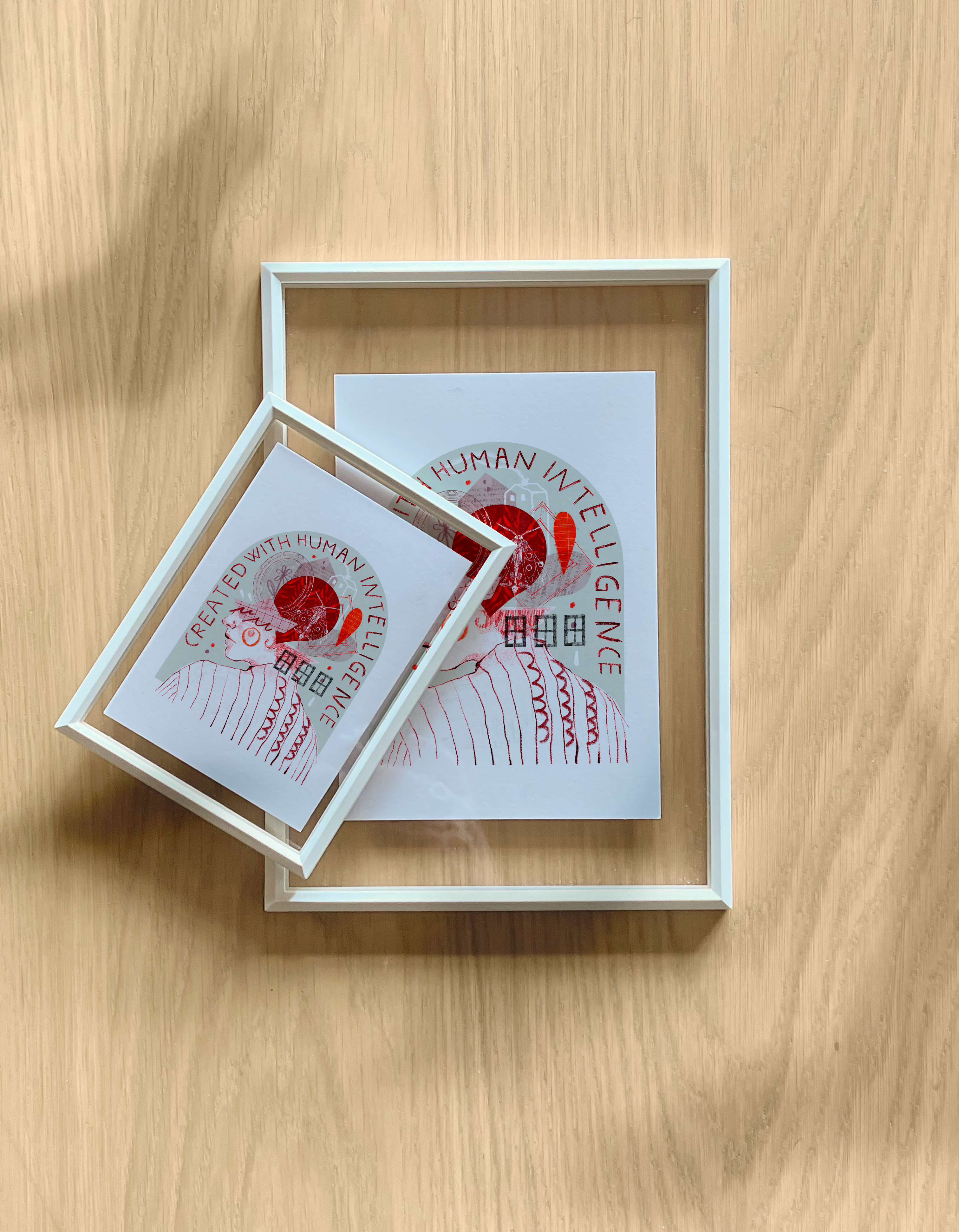 Illustrazione "Human Intelligence" incorniciata con doppio plexiglass e cornice bianca, disponibile nei formati 13x18 o 21x30, cornice inclusa nelle misure. Approfitta dell’opportunità di aggiungere alle pareti di casa un’opera già pronta per essere esposta ed accolta dalle tue pareti.