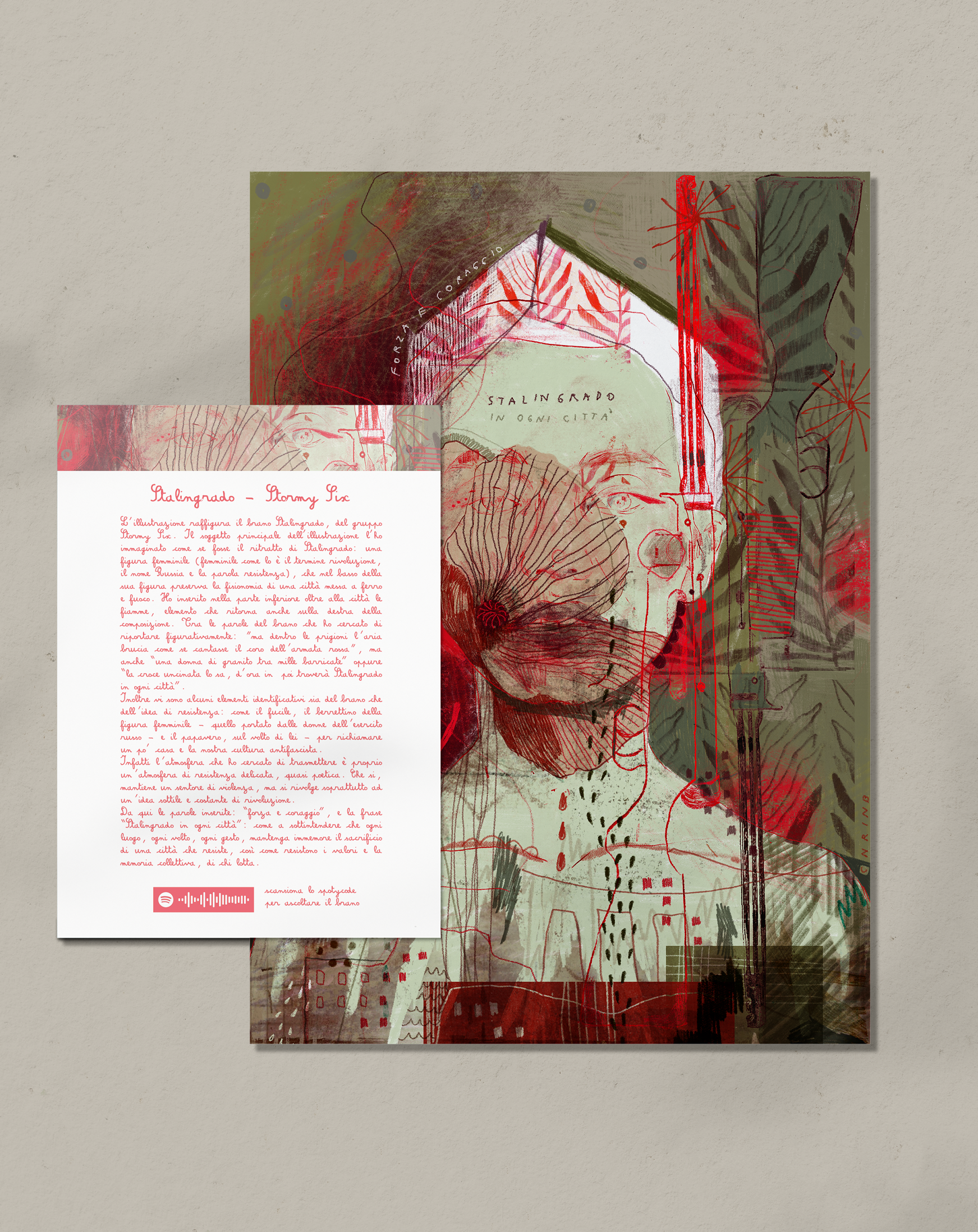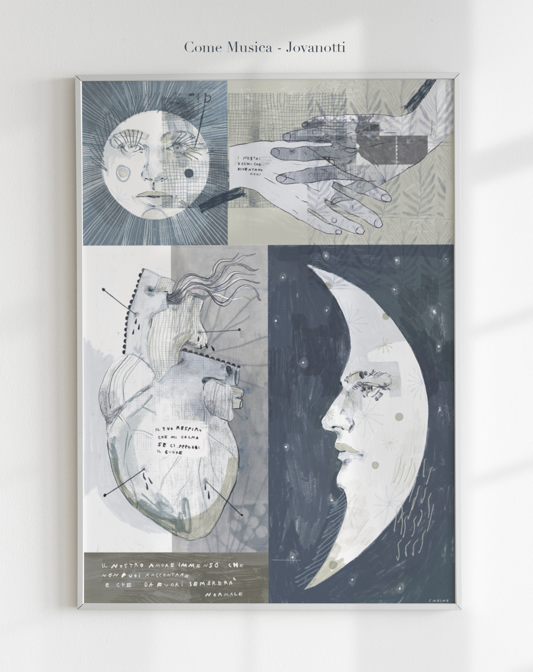 Ideale come regalo o ricordo speciale che consente di rivivere una canzone in modo diverso, creando una connessione nuova tra suoni e immagini. Ogni illustrazione è pensata per raccontare la storia del brano tramite il mio stile personale.