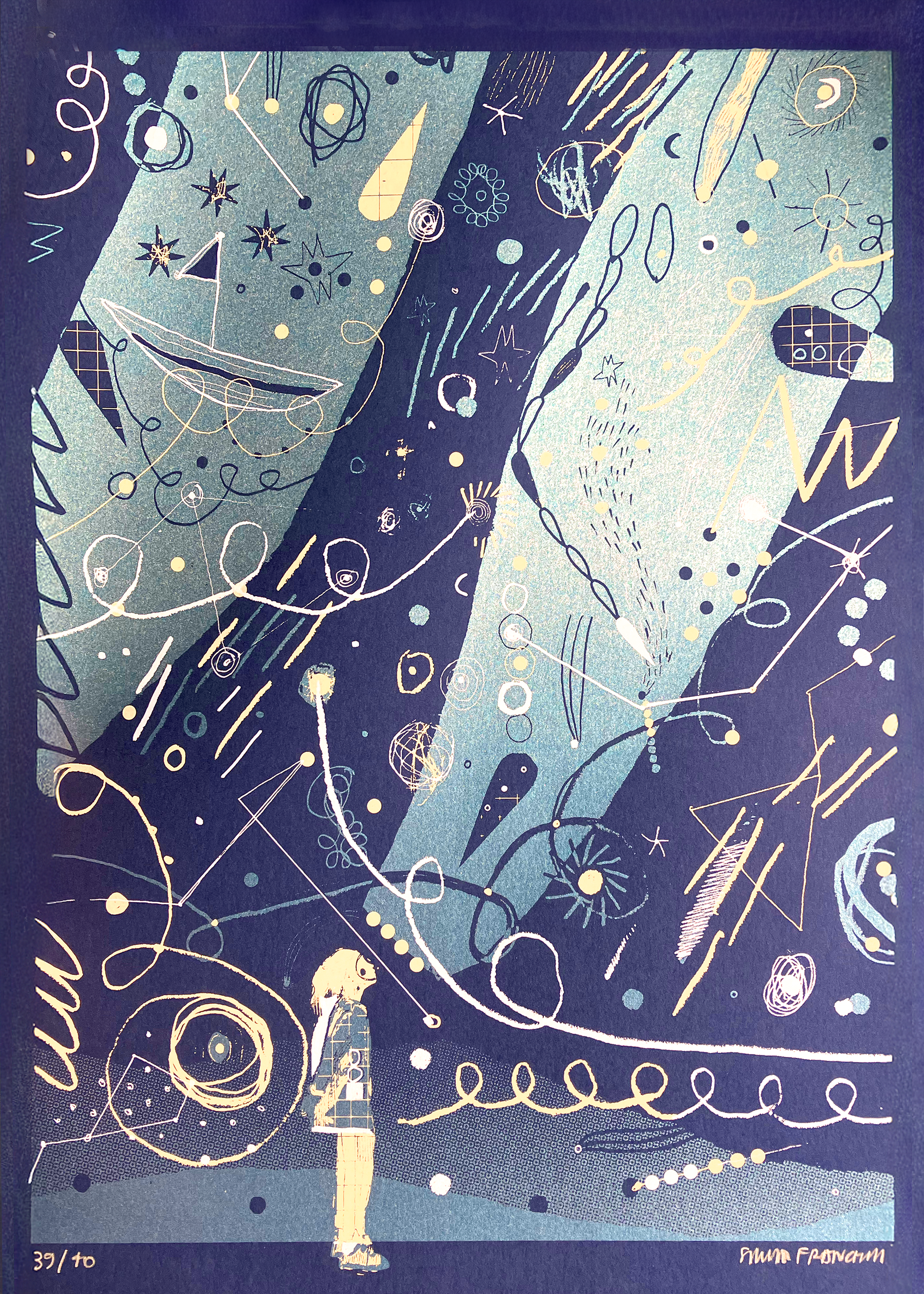 Serigrafia in edizione limitata: ogni copia è numerata e firmata a mano, la tiratura è formata da 40 copie.